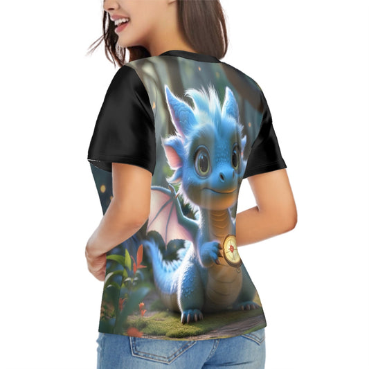 T-shirt à manches courtes à col en V pour femme