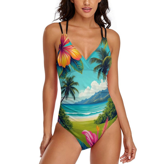 Maillot de Bain Une Pièce Col V Plongeant à Bretelles Croisées