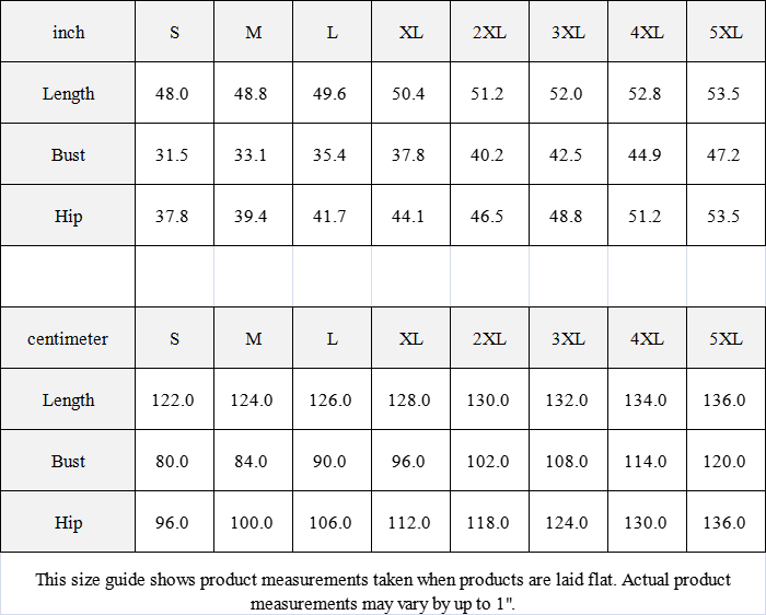 inch | S | M | L | XL | 2XL | 3XL | 4XL | 5XL |