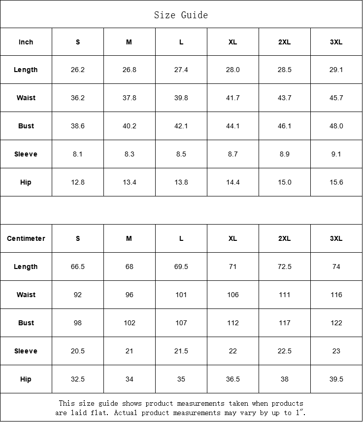 This size guide shows product measurements taken when products are laid flat. Actual product measurements may vary by up to 1".