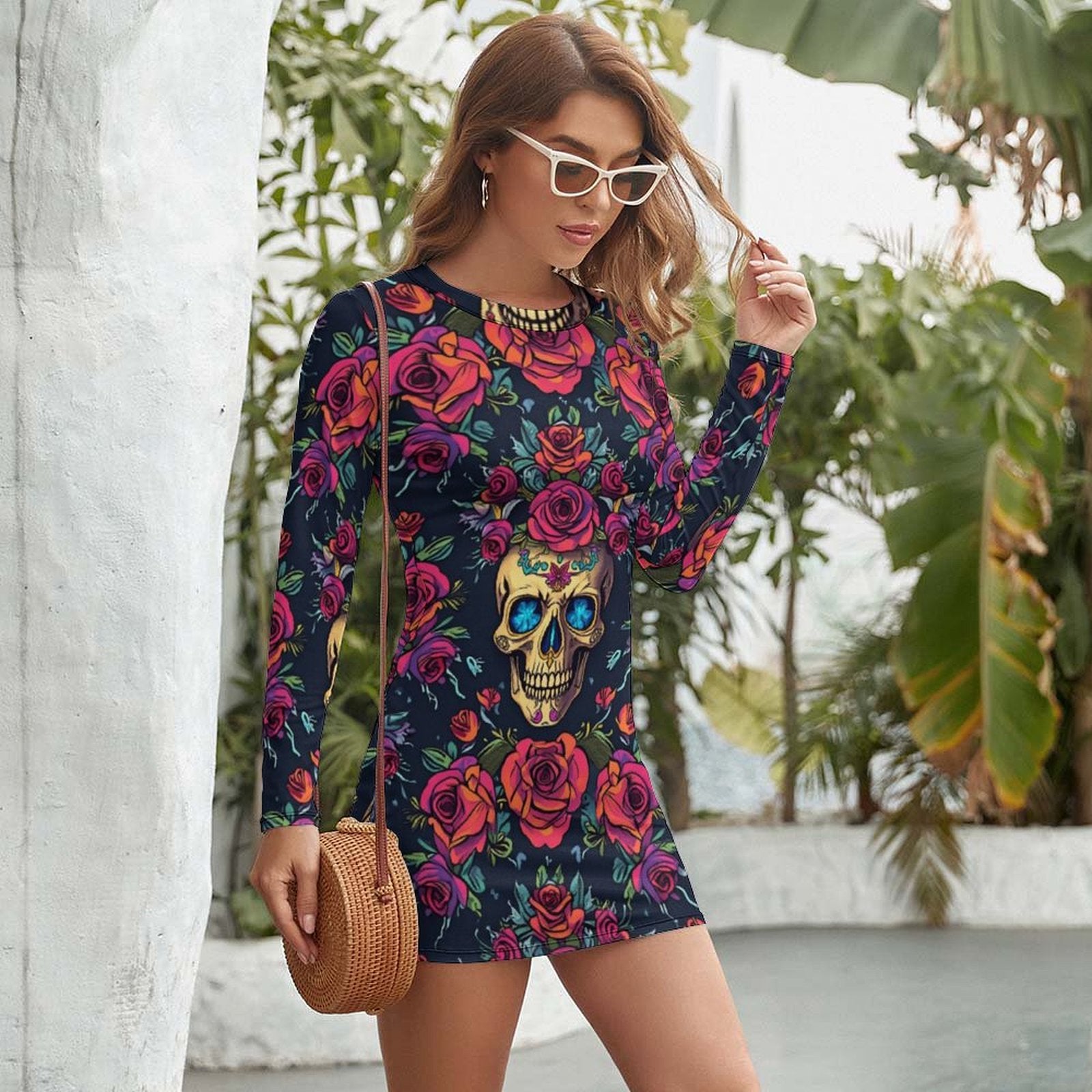 Robe Mini Moulante à Manches Longues