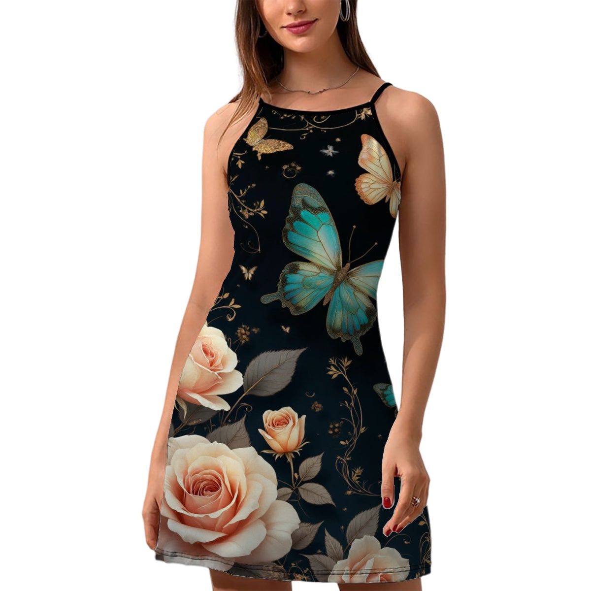 Cette robe à bretelles spaghetti chic sur mesure est fabriquée dans un tissu de haute qualité, doux et respirant. Il présente une coupe flatteuse avec des bretelles réglables, un col ras du cou sans manches et un dos légèrement ouvert. La robe tombe au-dessus du genou, offrant un look mignon et sexy qui est parfait pour la superposition ou le port seul, vous gardant élégant et à l'aise toute la journée.